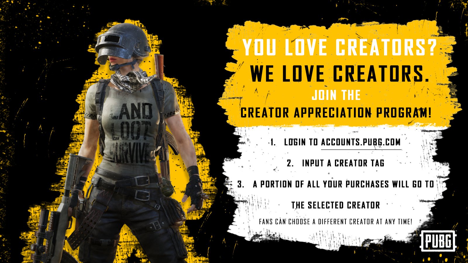 Pubg Battlegrounds Us On Twitter Announcing The Launch Of Our New Creator Appreciation Program Beta Support Your Favorite Creators As You Play Season 7 Details And A List Of Creators Here Https T Co Xrj6588djc